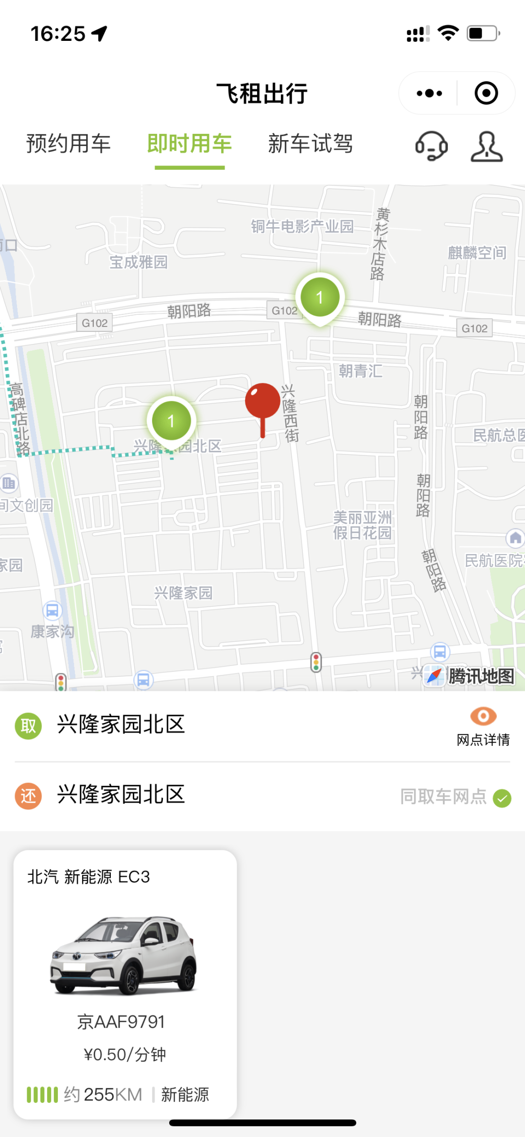 我们在小区内和小区东北侧东舍停车场都有网点,下单后,可在车辆订单页面点击“导航”,指针位置会显示车辆实时定位,按导航提示前往车辆即可,若找不到车可联系客服17812719532进行协助。
